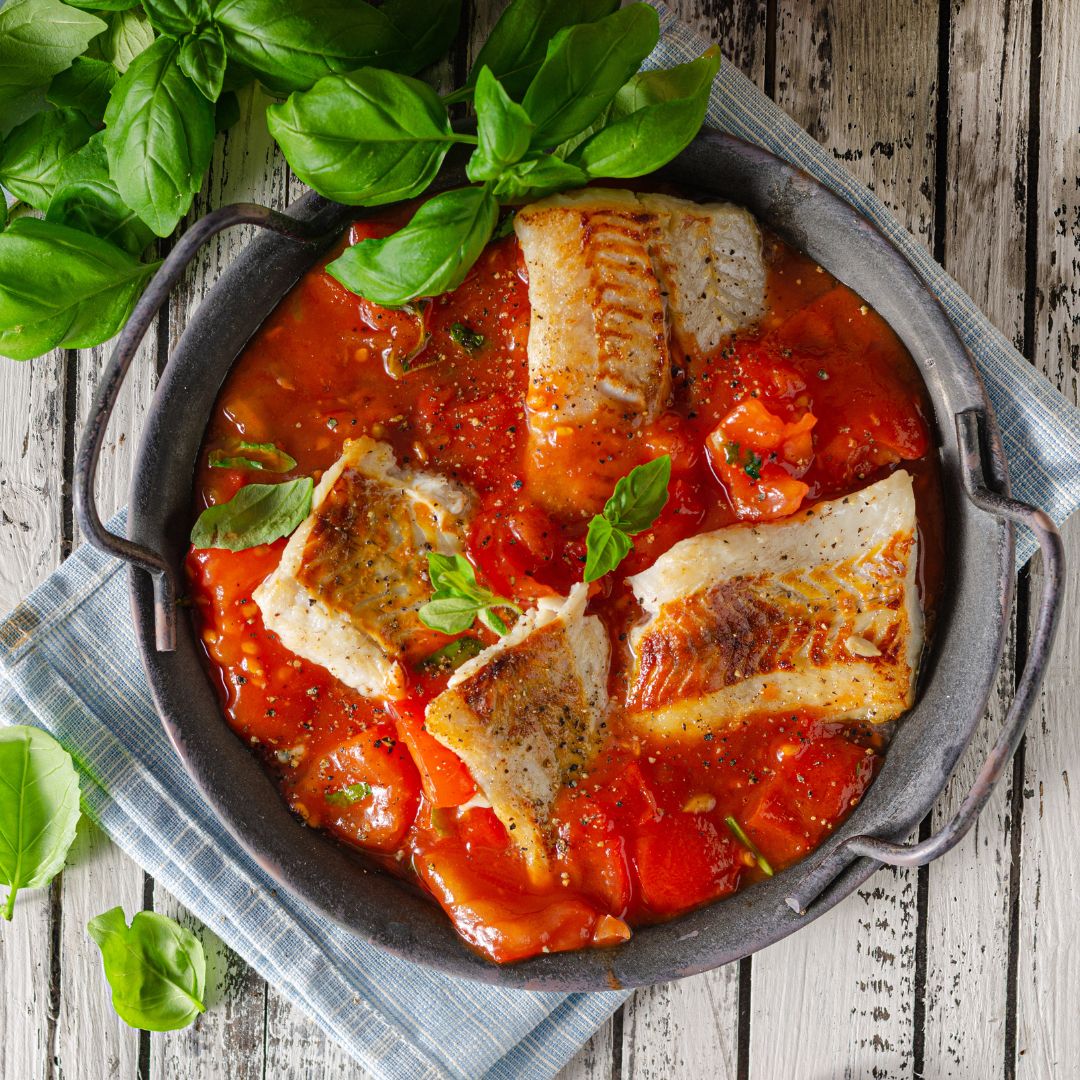 - Merluzzo (kabeljauw) in romige tomatensaus.
