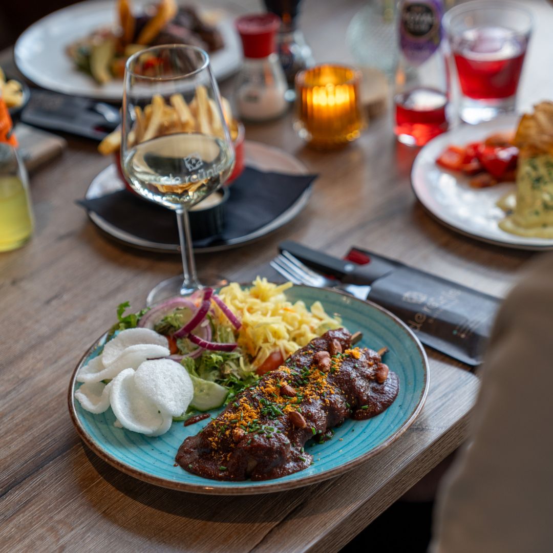 Je start met een keuze uit een dagverse soep of een broodplank met dips, waarmee je meteen in de juiste sfeer komt. Daarna kies je jouw favoriete hoofdgerecht: van een perfect gegaarde rumpsteak tot de populaire homemade spareribs, of een mooie dagverse vis. Iedere optie wordt royaal geserveerd en met zorg bereid.