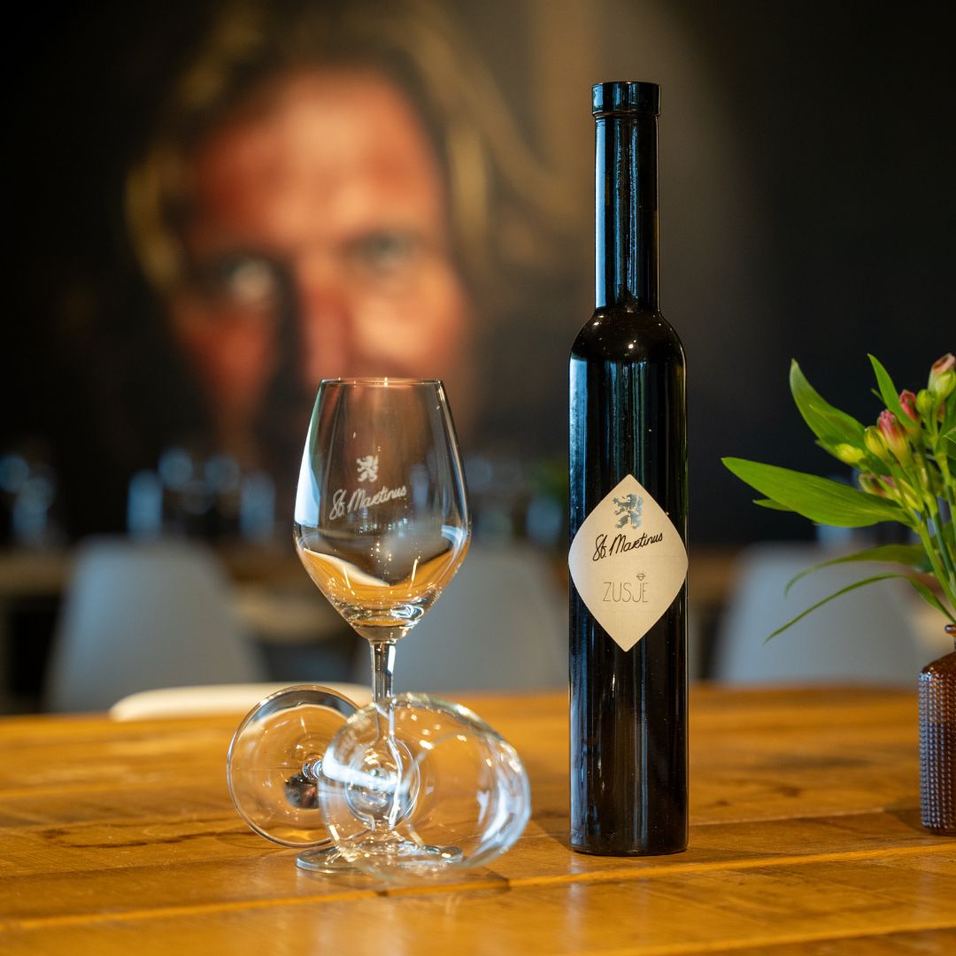 - 1 fles dessert wijn: Zusje | 8,5% | Dit is een heerlijke dessert wijn gemaakt van Solaris en Muscaris. De wijn heeft bloemige en nectar tonen en is een ware smaaksensatie. Hij is lekker bij fruitige desserts, maar combineert ook goed met bijvoorbeeld een goede eendenlever of paté.