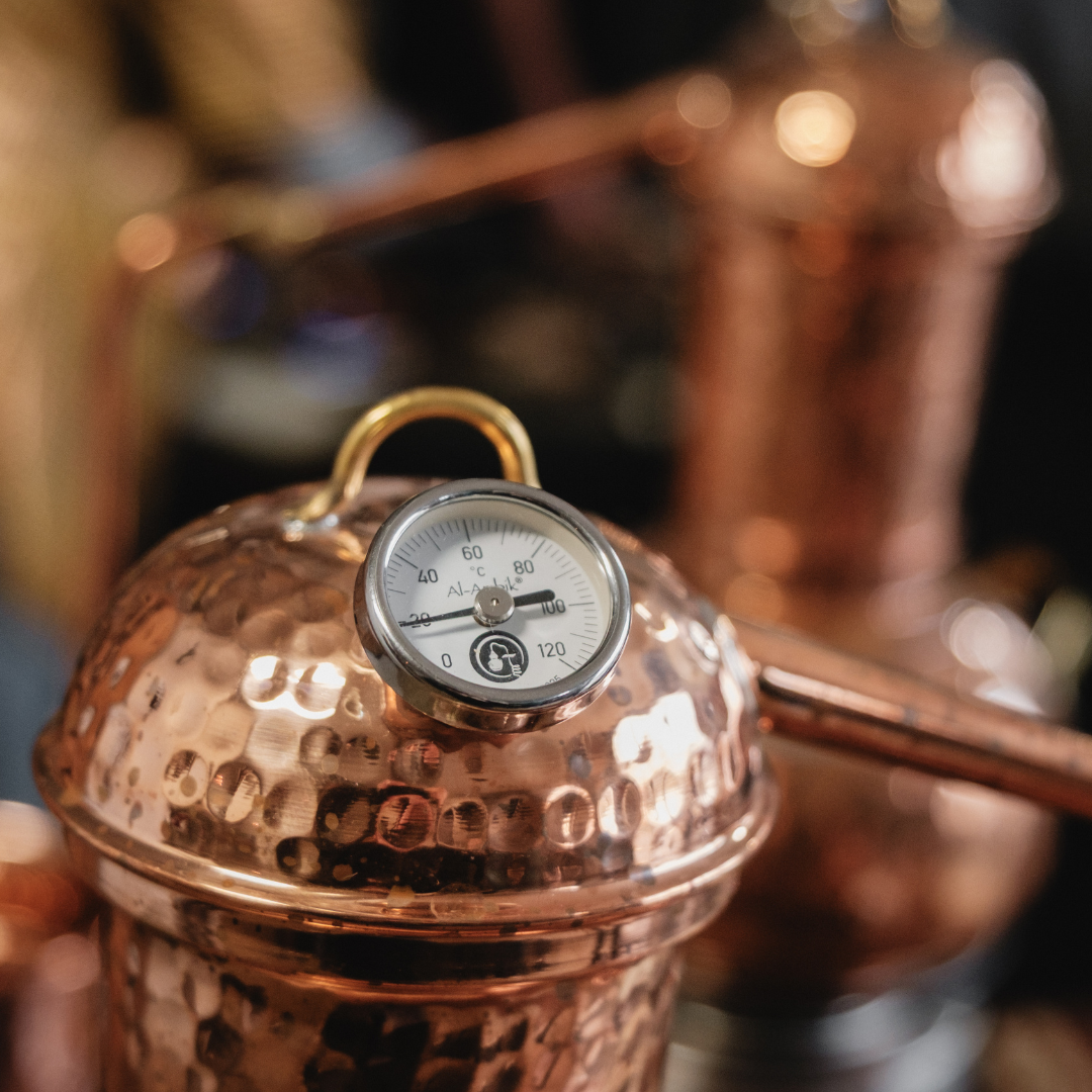 Je begint met het selecteren van je kruiden en specerijen: frisse citrus, kruidige jeneverbes of bloemige tonen, jij bepaalt het karakter van je distillaat. Daarna ga je zelf aan de slag met de alambiek, net als de stokers van vroeger. Terwijl de eerste druppels in de fles vallen, vult de ruimte zich met de geur van pure ambacht en passie voor het vak.