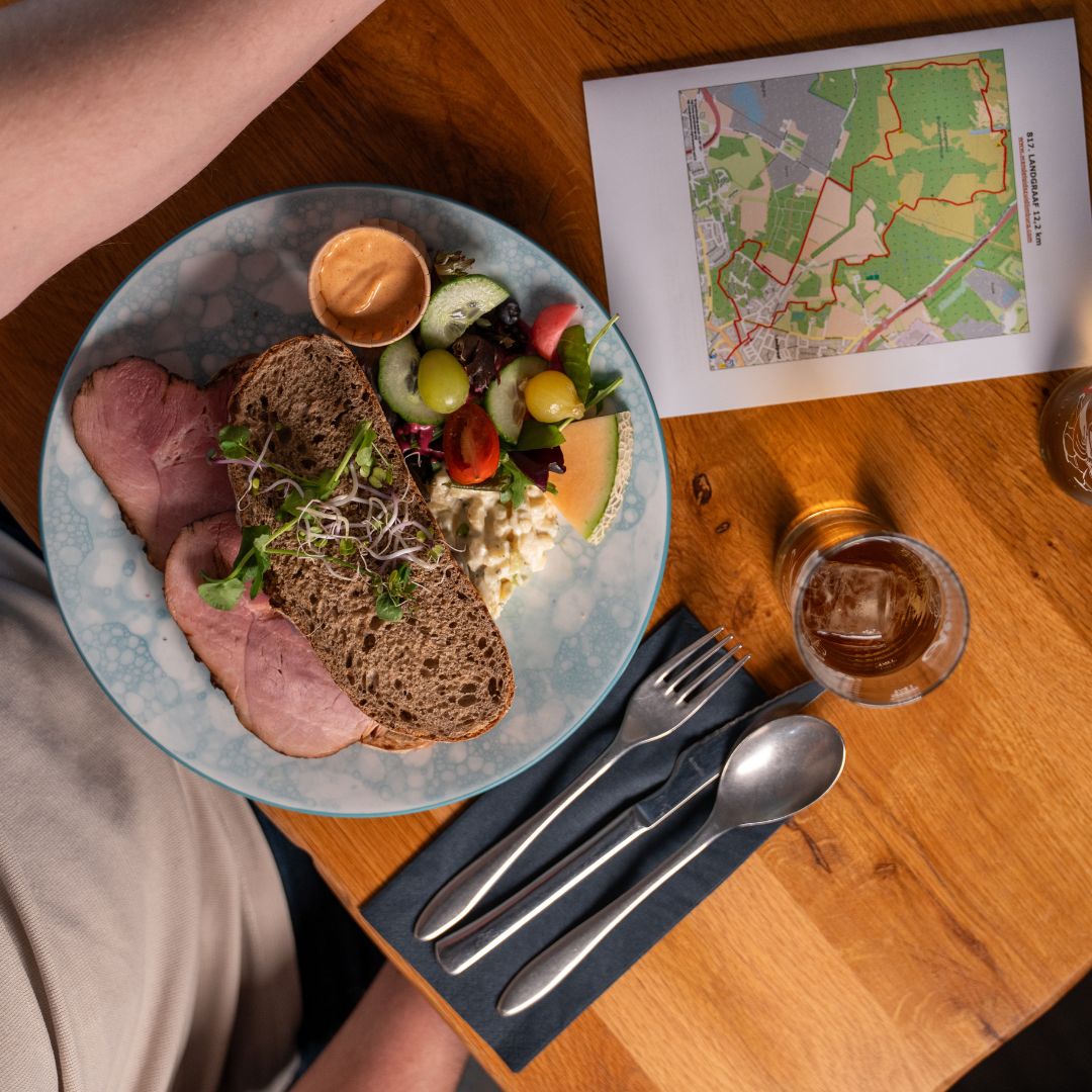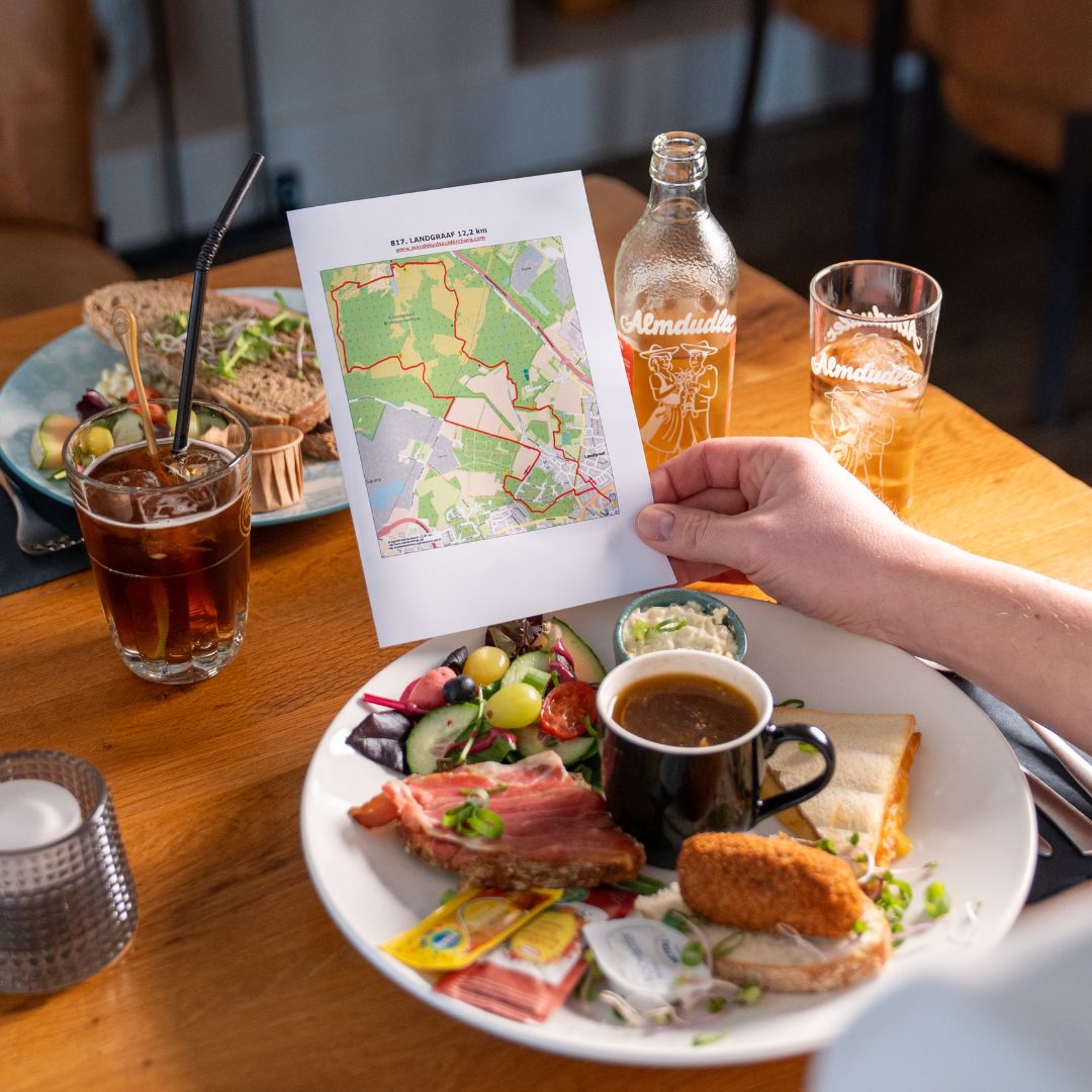 Na de wandeling geniet je van een heerlijke lunch naar keuze! Van een broodje brie tot een pasteitje met ragout, of een hertenuurtje.