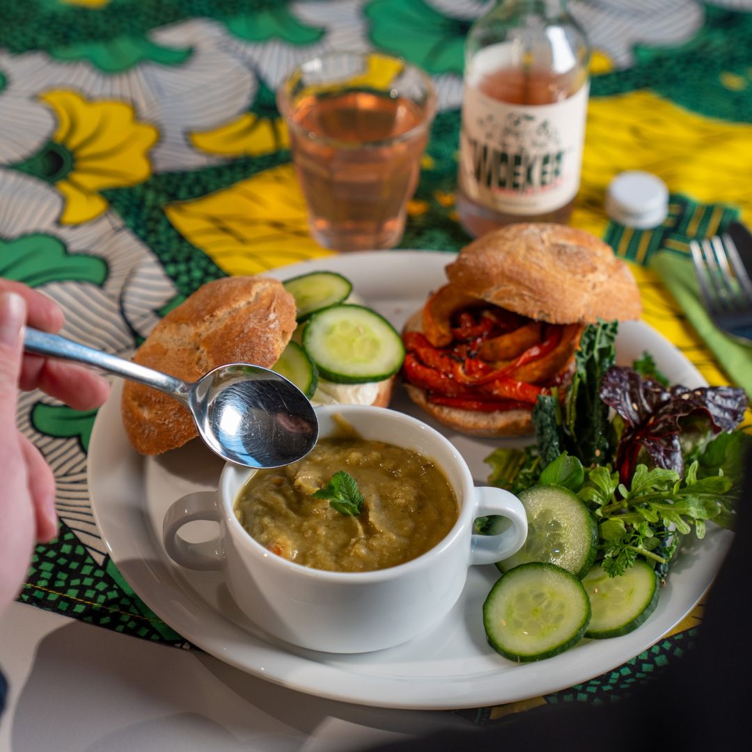 - Daarna geniet je van een lunch: seizoenssoep, salade uit de tuin en broodjes belegd met lekkers uit de streek en van het seizoen.