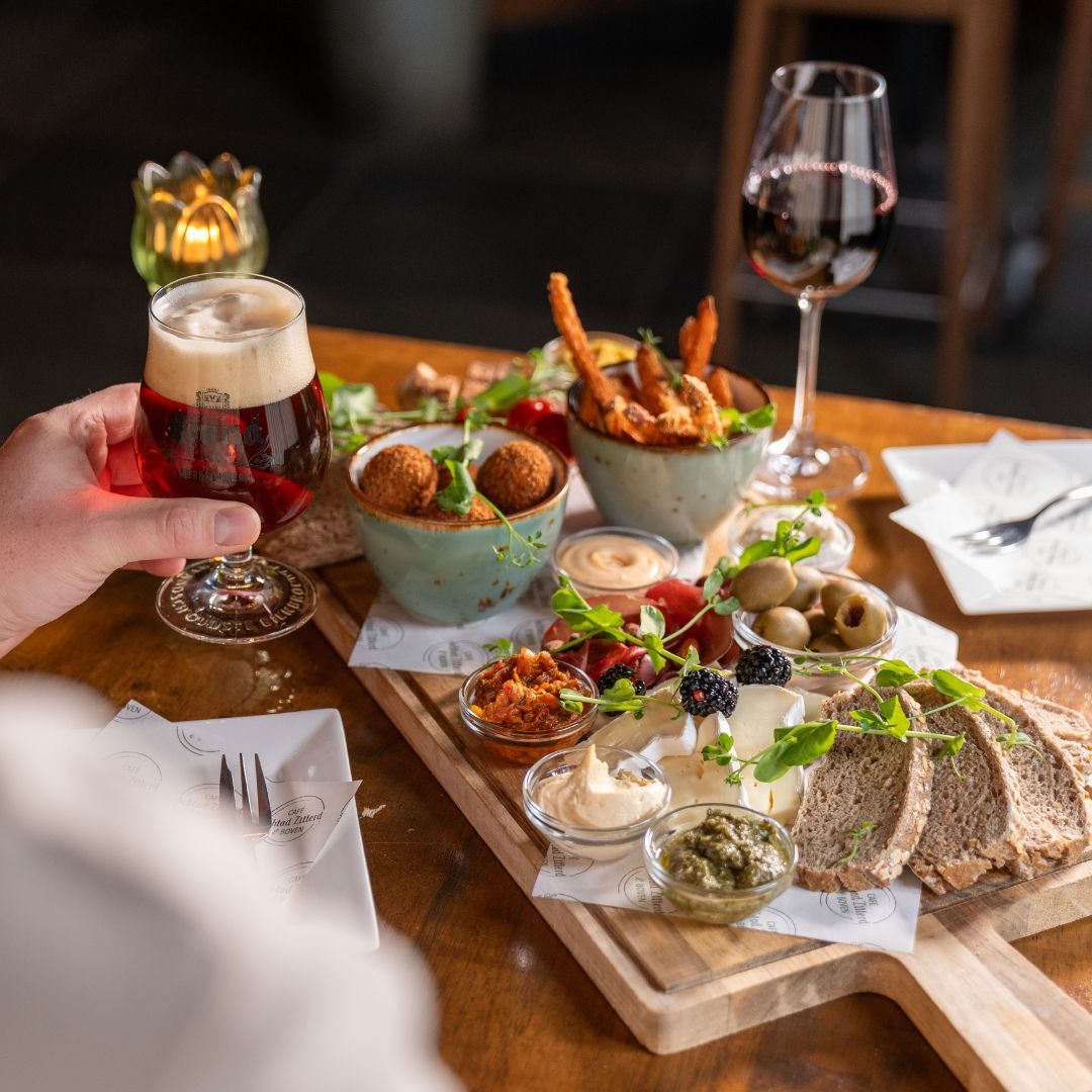 • Geniet van een rijkgevulde borrelplank met diverse warme en koude hapjes